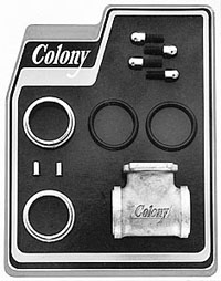 | This replacement type "plumber" manifold is precision cast from high strength alloy steel, then precision machined in the Colony tradition to give you the ultimate in performance and classic beauty. This manifold is sold complete with guaranteed to fit Colony brass seals to insure your satisfaction. |
