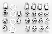 | Chrome plated acorn nuts fit rocker boxes and rocker arm shafts. Kit includes rocker arm shaft washers. Fits all Shovelhead 1966-1984.